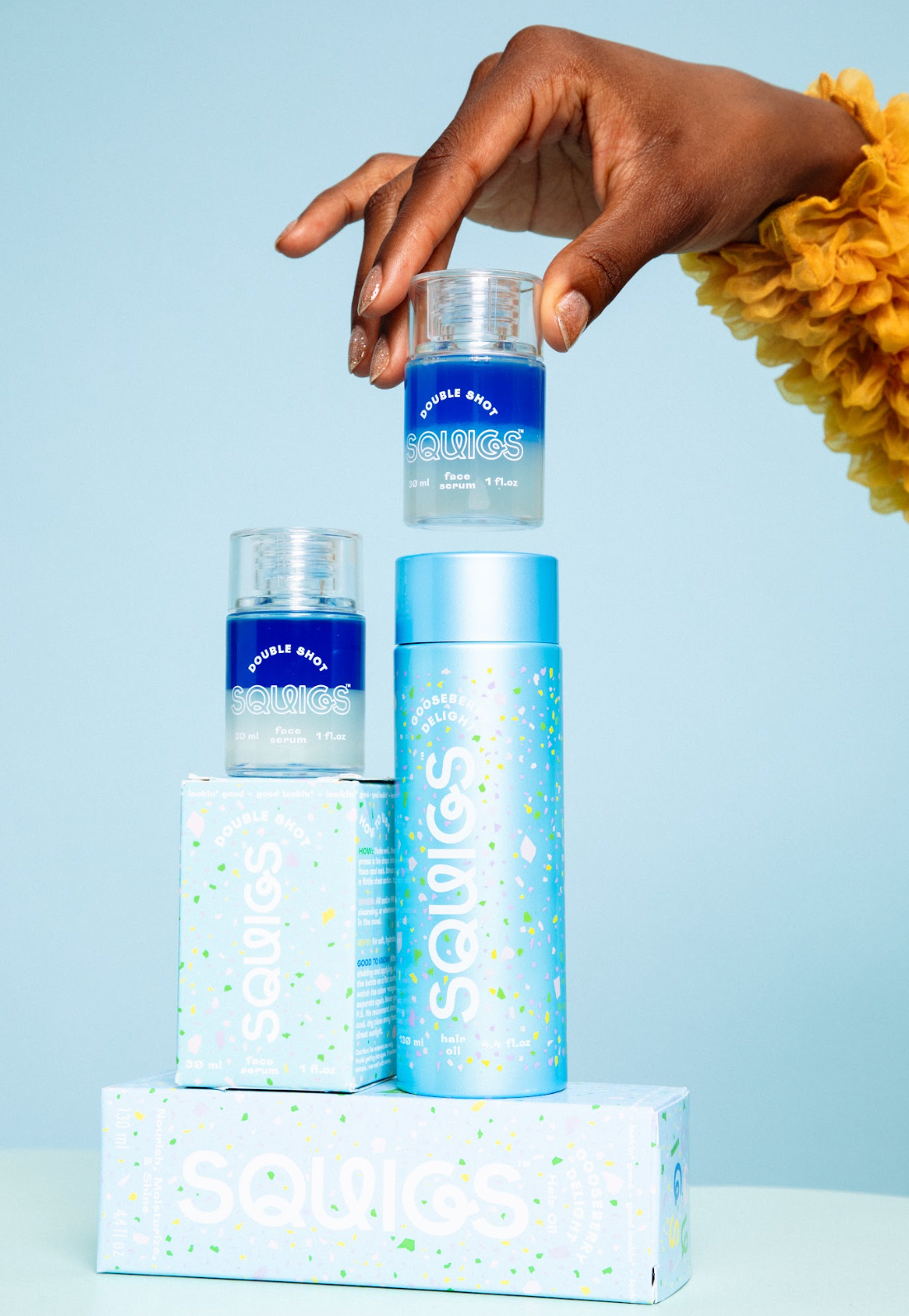 Experience happy, hydrated hair and skin with our award-winning Squigs Happy Headcare Set.