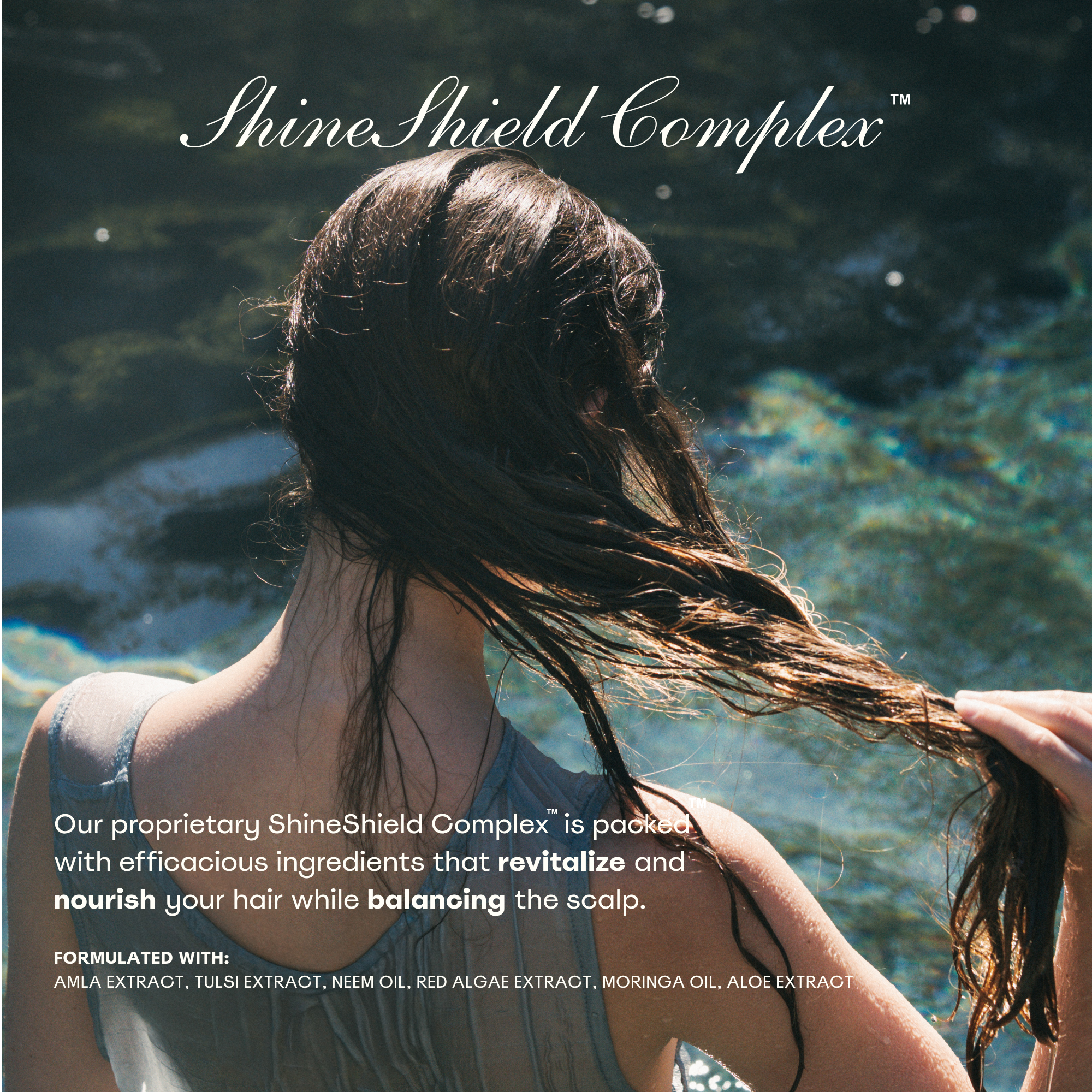 Our proprietary ShineShield Complex™️ is packed with efficacious ingredients that revitalizes and nourishes your hair while balancing the scalp.