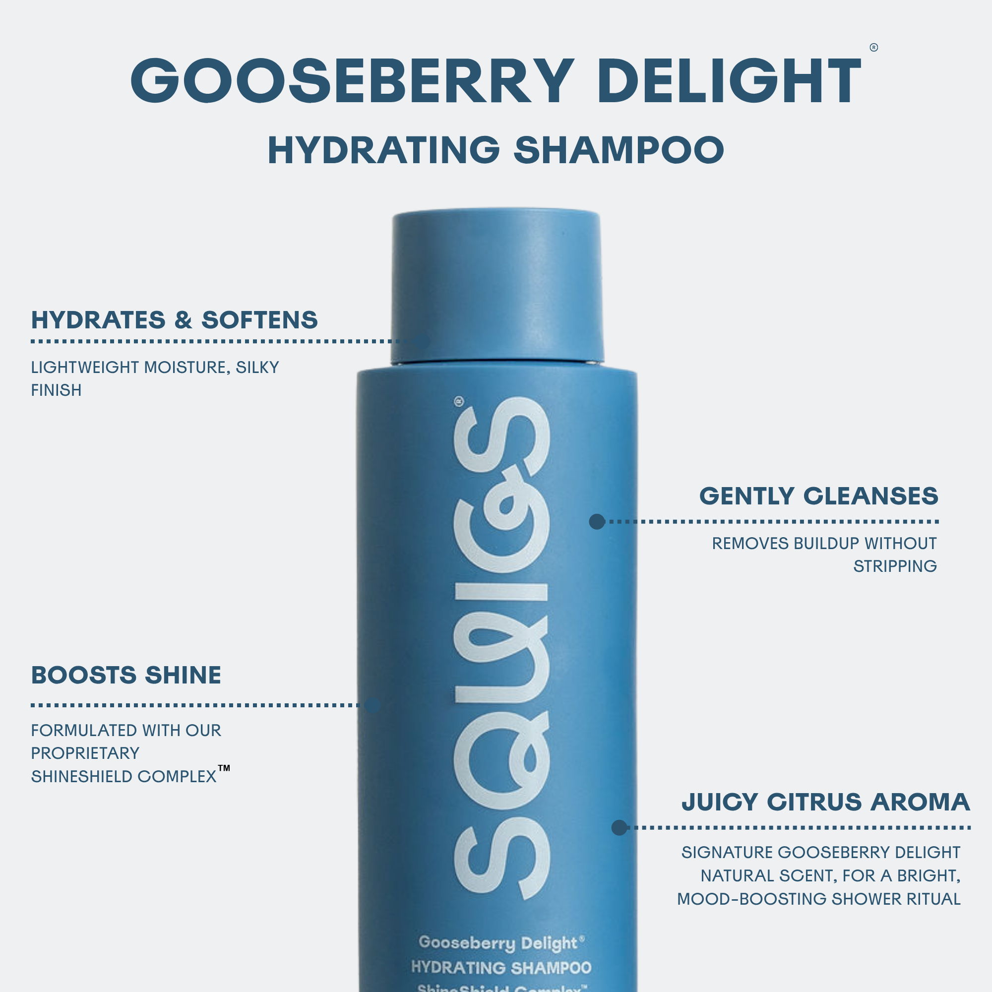 It's infused with our clean, 100% naturally-derived Gooseberry Delight® scent. Our shampoo and conditioner fill your shower with bright, juicy, citrus notes of orange peel and grapefruit for a mood-boosting experience.